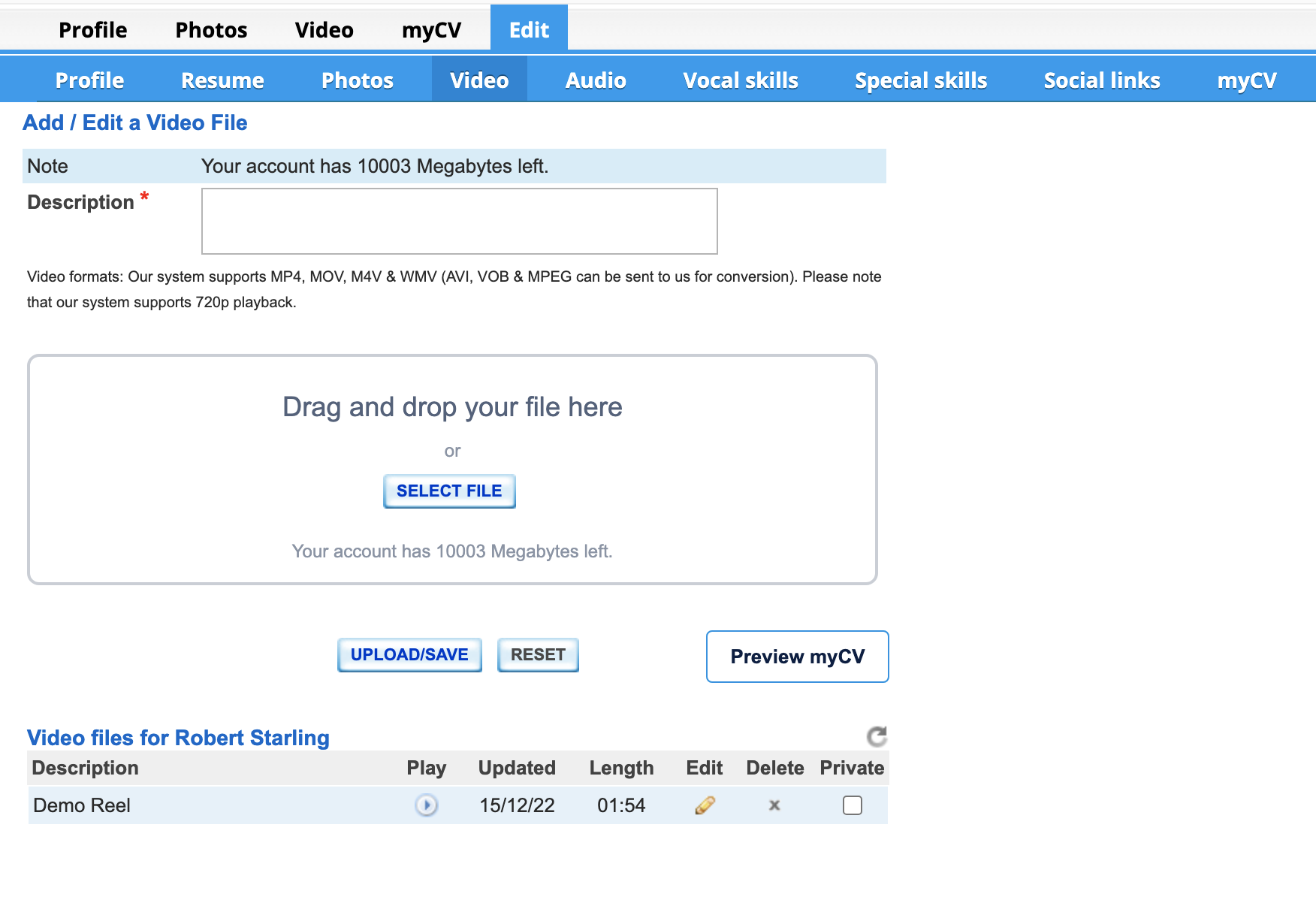 If you have any trouble with your upload, we are always here to assist. Please email media@castingworkbook.com with your video file and we can get it uploaded for you.